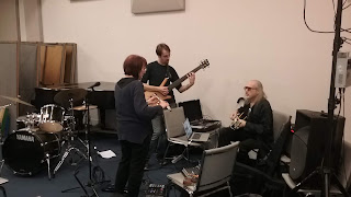 We started off with a shorter, all improvised piece. Things felt flowing and groovy right from the start. I was able to get into the vibe with everyone, interacting with Mika, Eli, Kersti and Shawn in what felt like equal measure. For the second piece, we debuted an evolving piece that has been written about the Amazon rain forest, and its perilous state as corporations plunder the resources therein. We drew musical inspiration from Hermeto Pascoal and Airto Moriera, loosely moving through three distinct parts. Mika's directions were sent out and noted by all. Having some notation helped a lot; I felt that everyone was able to sync up and agree as to which parts were to start. Really smooth transitions, and, again, I felt very much inside the music as it was happening. Such a great feeling, as always. It was a real pleasure to play the house kit of Earl Watkins Hall, along with letting my old Box of Rocks reappear after many years on mothballs. Good percussive stuff!